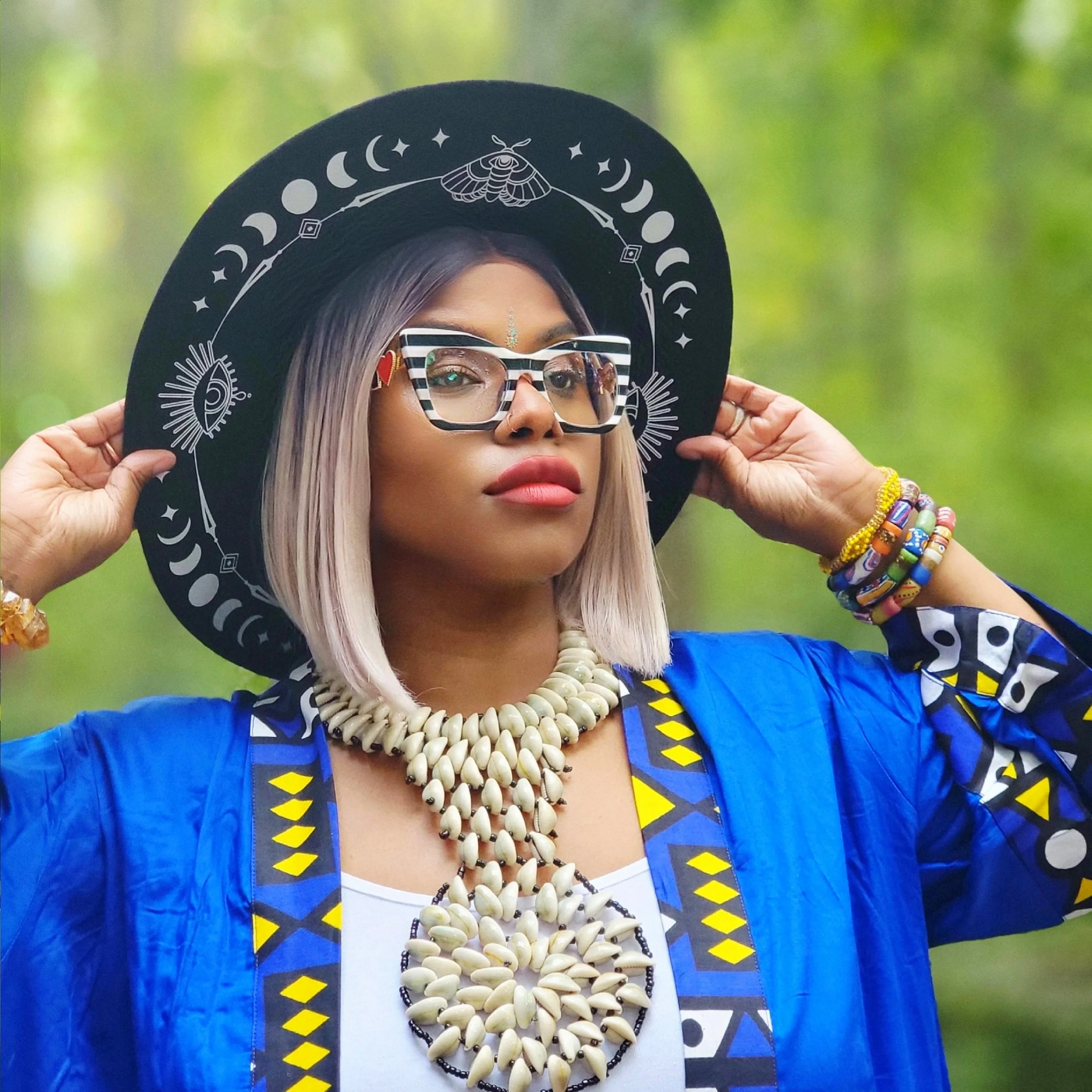 Categories: All Wide-Brim Tops Bottoms Dresses Jumpsuits Kimonos | Cardigans Accessories Hats Jewelry Books Sale All | Wide-Brim | Tops | Bottoms | Dresses | Jumpsuits | Kimonos | Cardigans | Accessories | Hats | Jewelry | Books | Sale | Cowrie Shell Show Piece Necklace $107.00 Add To Cart Added! Emerald Kaftan $35.00 Add To Cart Added! "Art Gallery Mogul" Patchwork Dress $55.55 Add To Cart Added! Beautiful Kaftan Gown $88.00 Add To Cart Added! Cropped Pancho shirt $44.00 Add To Cart Added! Goddess Reigns Robe $62.00 Add To Cart Added! Osunlewa's Prayer Necklace $125.00 Add To Cart Added! Natural Ankh with Cowrie Shell Earrings $22.00 Add To Cart Added! Natural Africa Map Earrings $22.00 Add To Cart Added! Goddess Drip Moon Phase Wide Brim Hat $71.00 Add To Cart Added! Jumpsuit / Ankara $88.00 Add To Cart Added! Ankara Patchwork Print Wide Palazzo Pants $53.00 Add To Cart Added! Lookbook Of A Goddess
